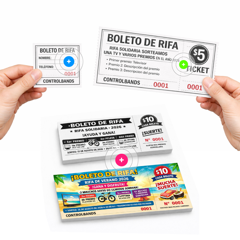 Tickets, boletos de consumo, rifas.