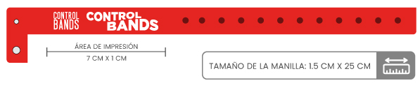 Sistema de cierre inviolable con broche que, una vez ajustado, no puede retirarse sin dañarse. Incluye múltiples orificios para adaptarse cómodamente a diferentes tamaños de muñeca.