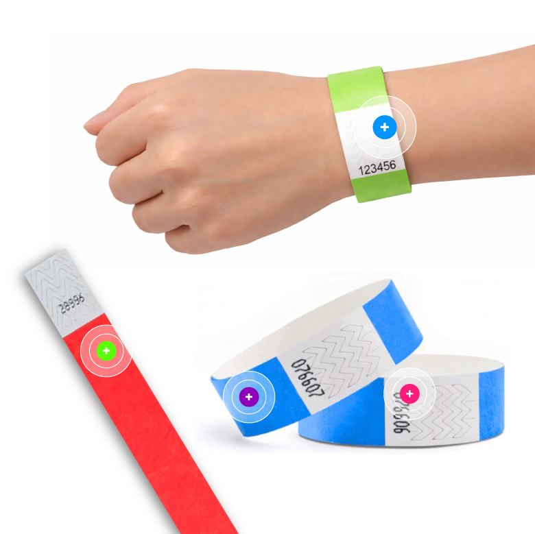 Pulseras de seguridad Tyvek listas para usar, resistentes al agua y al desgarro. Ideales para control de acceso en eventos, locales y actividades temporales. Ligeras, cómodas y de cierre adhesivo inviolable para mayor seguridad.